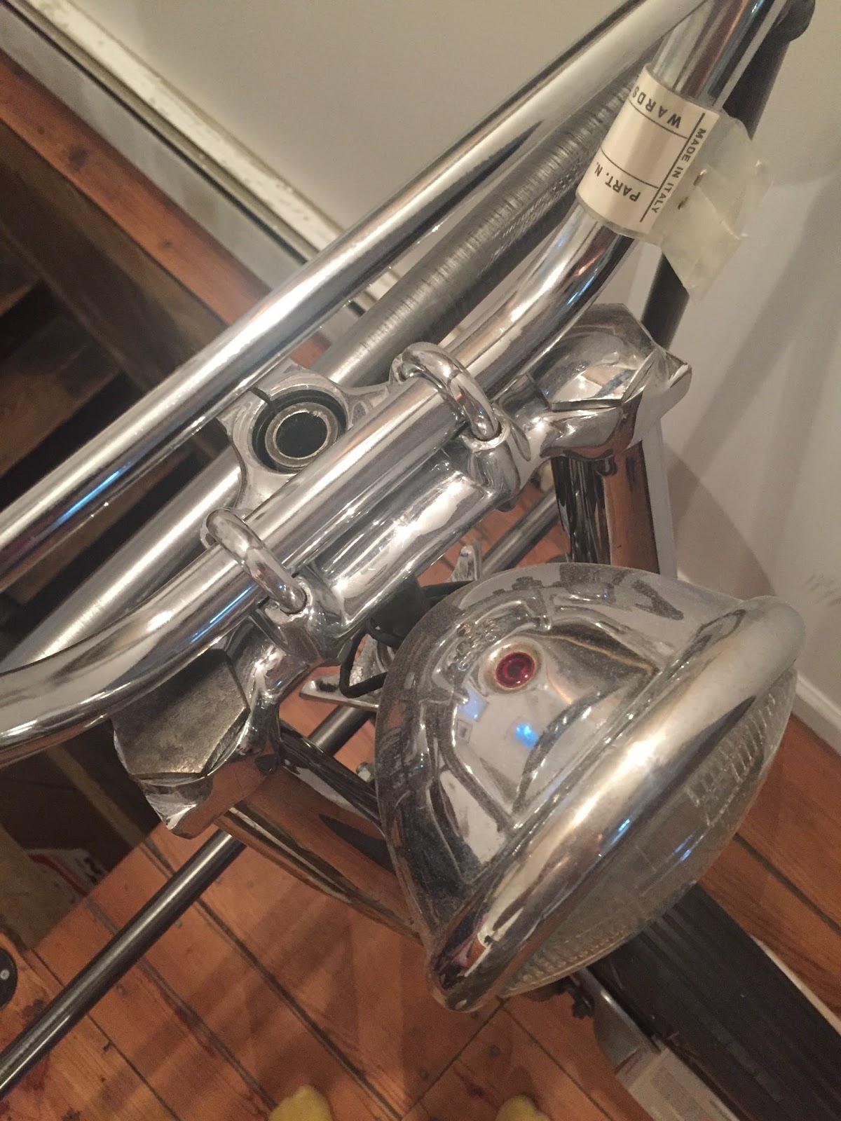 Below are pictures of the front end I have for sale. I'm selling it complete with super practic throttle ,tomaselli bars,bates headlight,old chrome MCM fork covers,19" front wheel with 8" hub and special scooped front hub. The hub is compete with pads. It's located in NJ and someone can reach me at drpd66@gmail.com